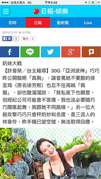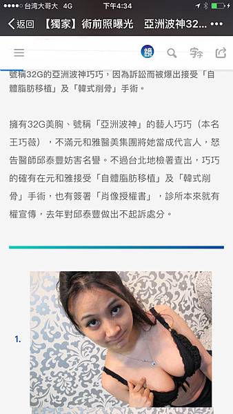 對於他們所說看不出有G奶 意指我騙觀眾 但在手術前一年2010/11/12蘋果日報就已大篇幅的帶我去驗胸 給我亞洲波神風號 我何必還要在多此一舉